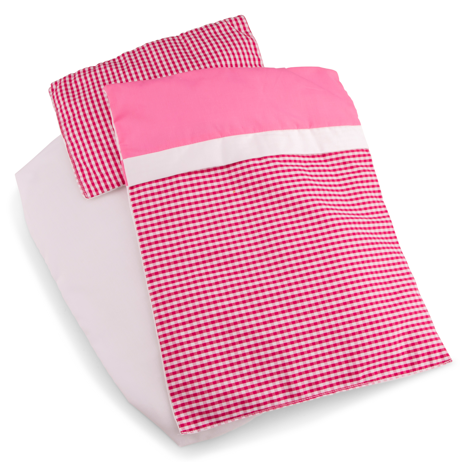 This doll bedding set from New Classic Toys is a 3-piece set and contains a duvet and pillow with mattress. Suitable for both doll's pram and doll's beds.