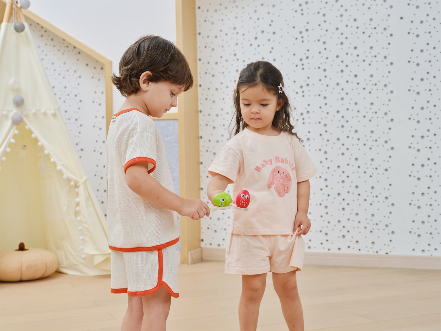 Includes: 4 wooden spoons and 4 colourful eggs.