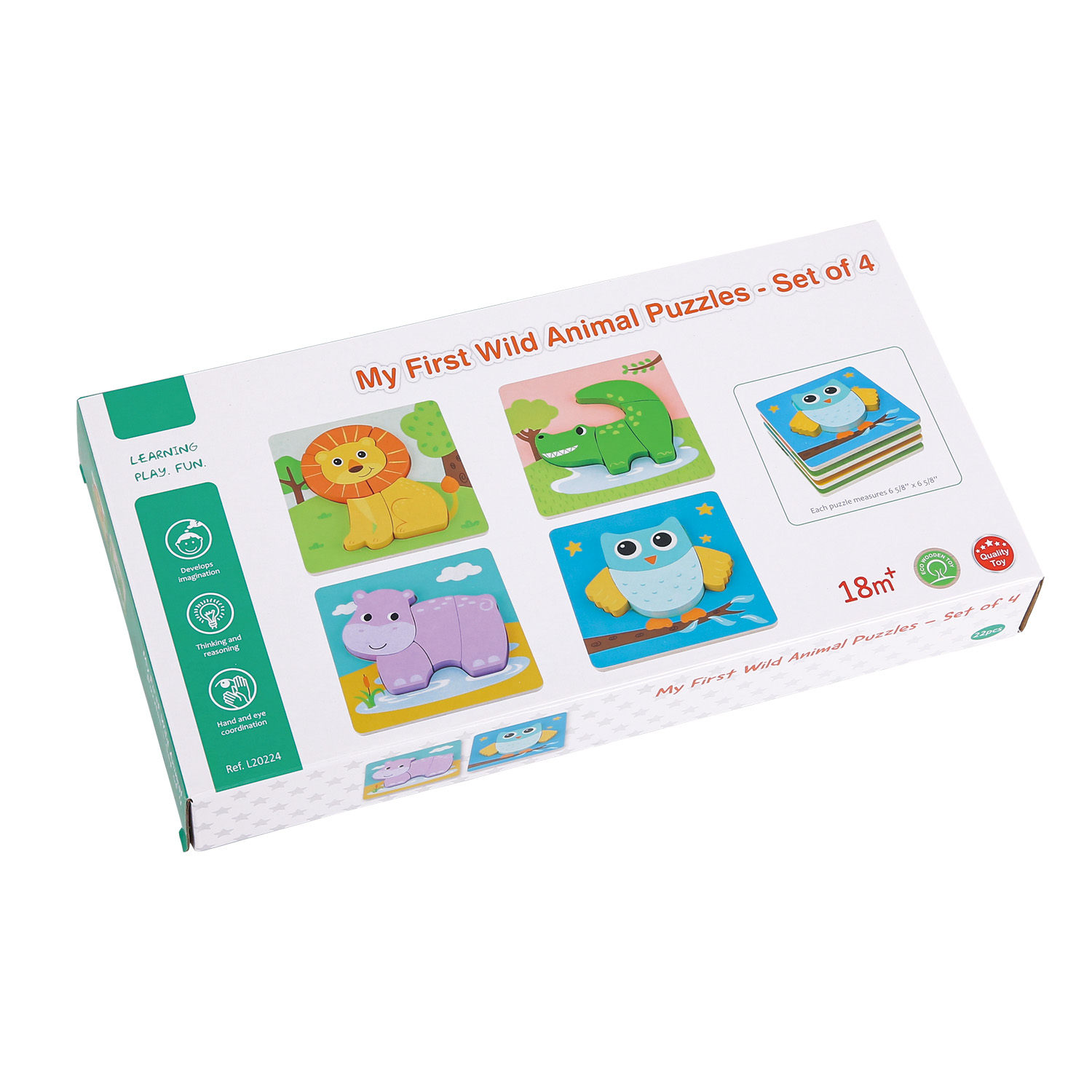 As children match each animal to its correct shape, they develop fine motor skills, hand-eye coordination and problem-solving abilities. The bright colours and friendly animal designs make this puzzle set a fun and educational introduction to early learning.