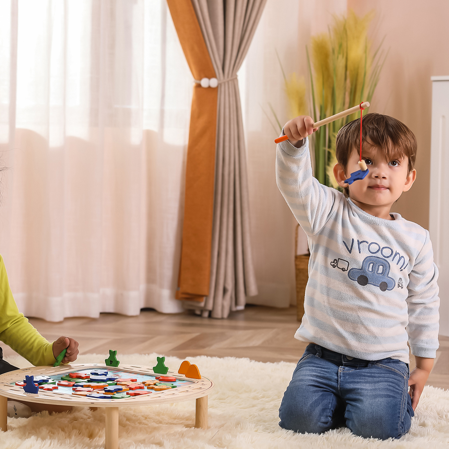 • There are four colors of fish, and each fish has a number on the back. Children can not only play fishing competitions, but also number games.