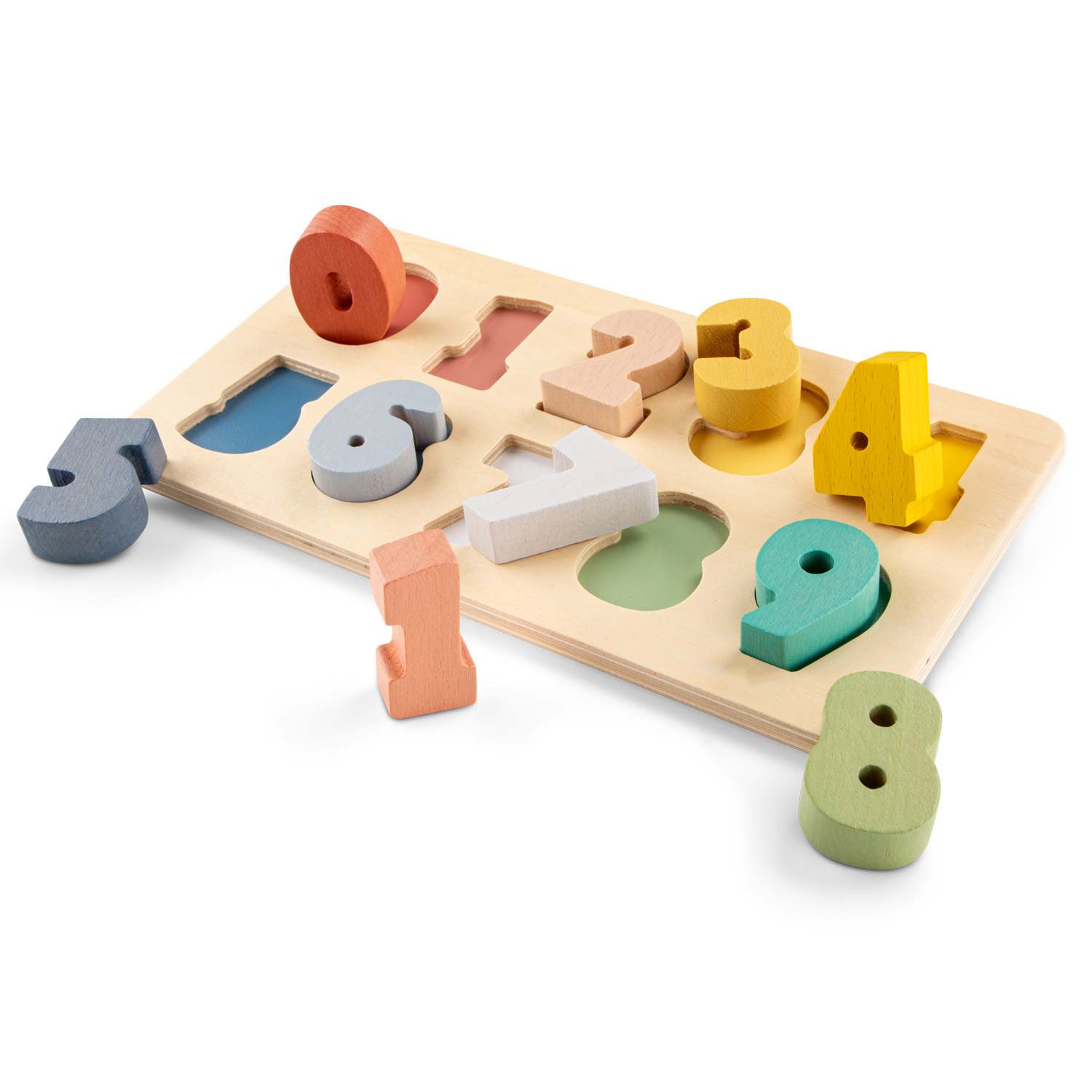 One, two, three! Can you already count? Introduce your little ones to the world of numbers with this wooden number puzzle from New Classic Toys. Made from beech wood, this educational toy is designed to enhance your child's cognitive development and fine motor skills. The puzzle includes ten colorful, chunky numbers from 0 to 9, each with smooth edges and vibrant colors.