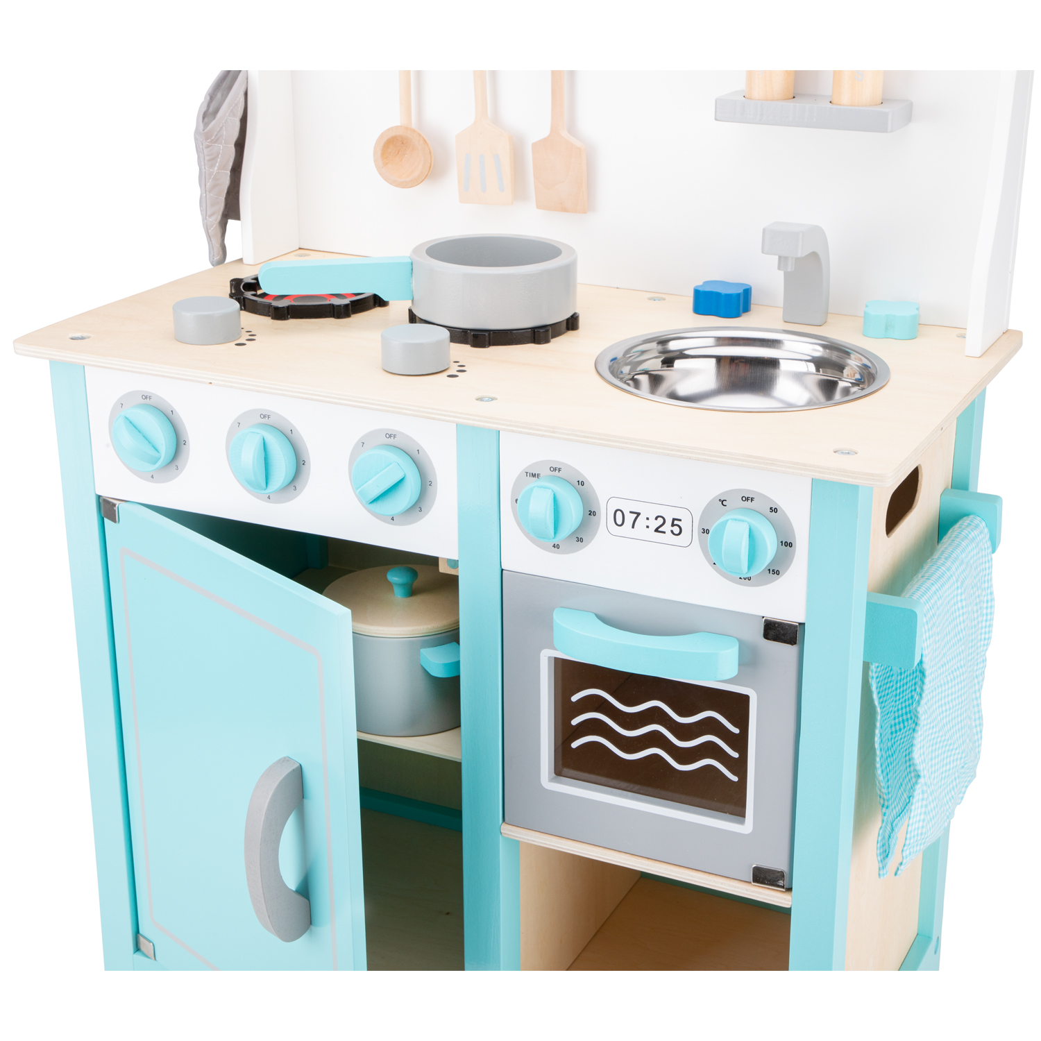This beautiful kitchen is part of the New Classic Toys "Bon Appetit" productline. Cutting, baking, cooking and ready for dinner! Our little pots, pans, cuttings sets and kitchens are absolute must haves for little master chefs.