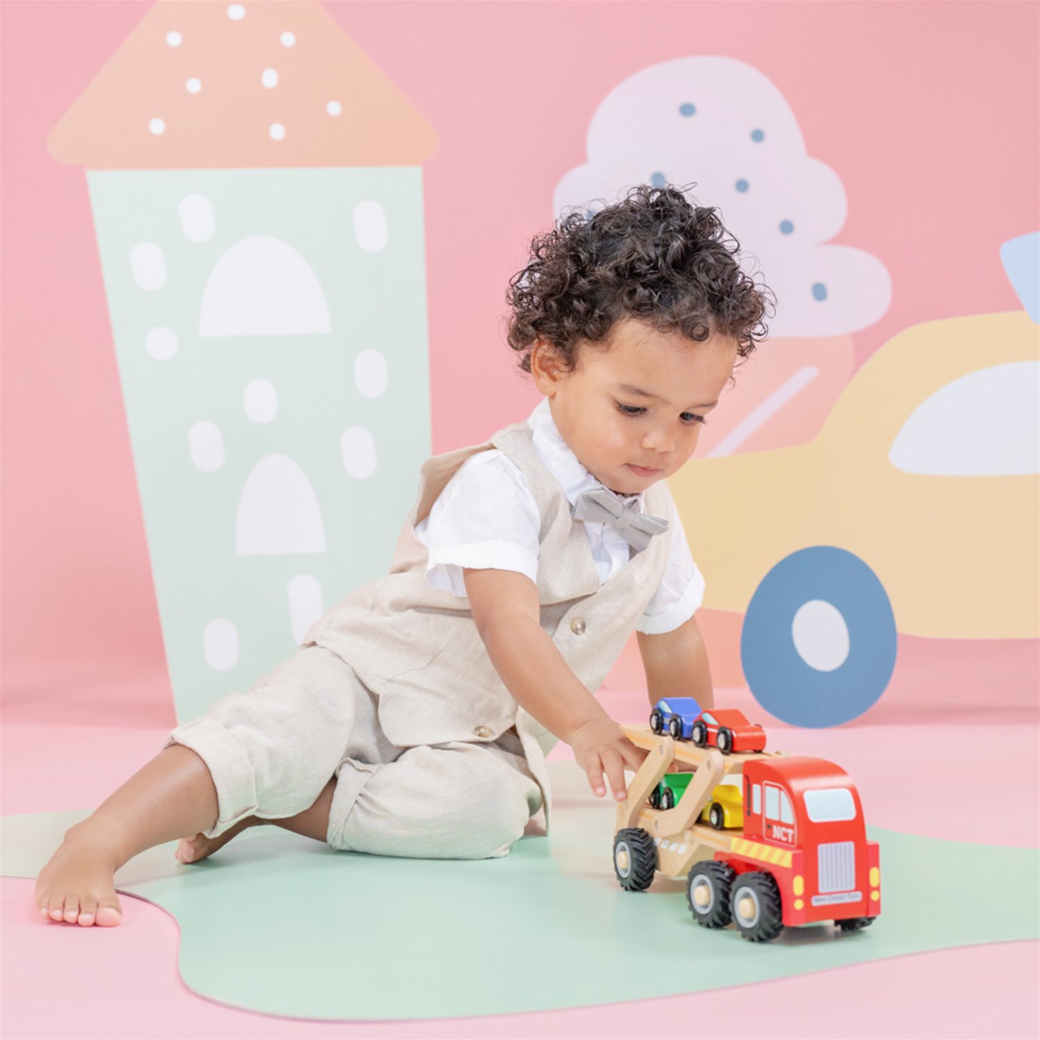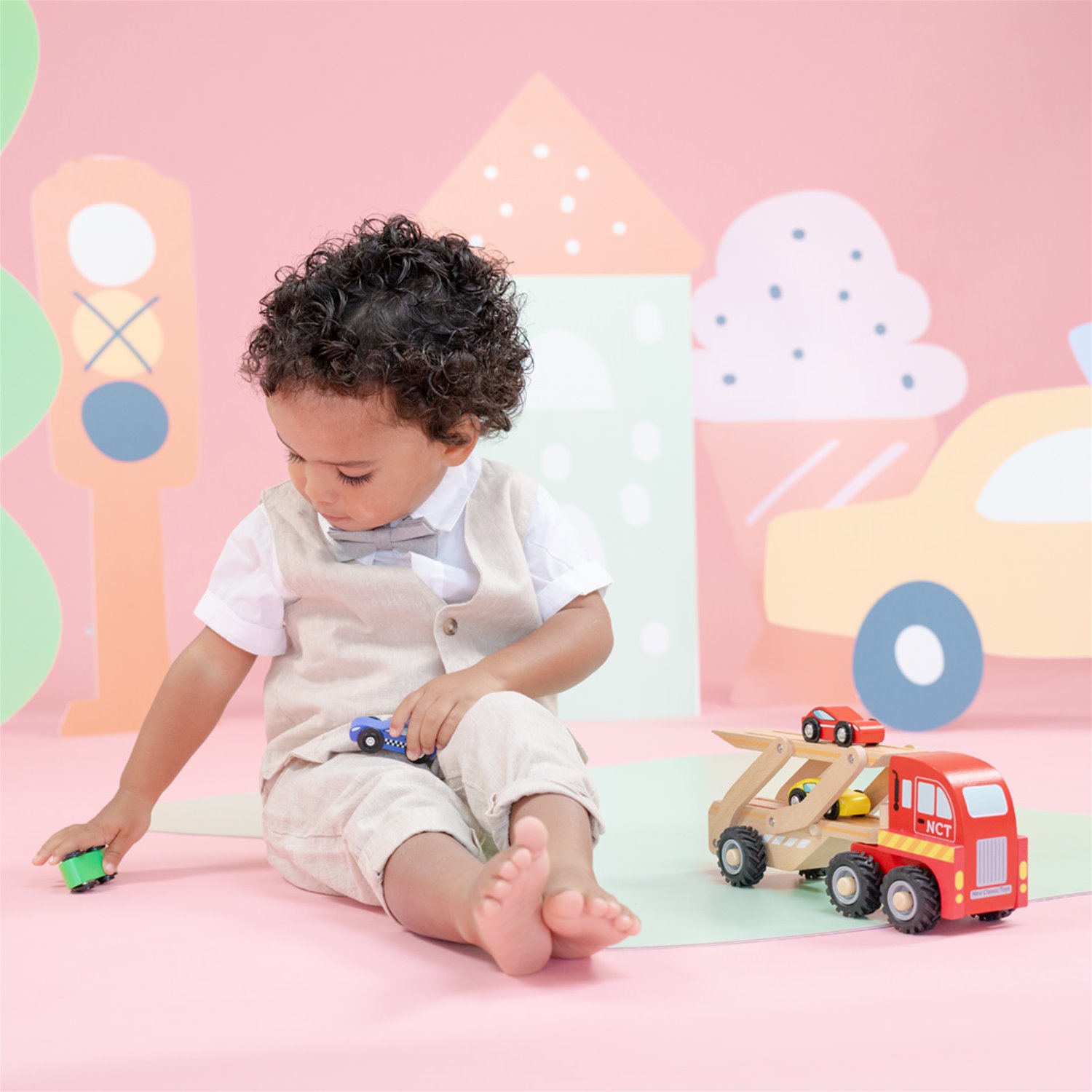 Playing with this wooden car transporter set serves as a great basis for creating and telling stories and is a great way to promote shared play with others. The wooden cars are perfect for the little hands to hold and play with and allows children to immerse themselves into the vivid imaginative world of small-world-play. Zooming, beeping, racing, crashing, parking. Children adore toy vehicles.