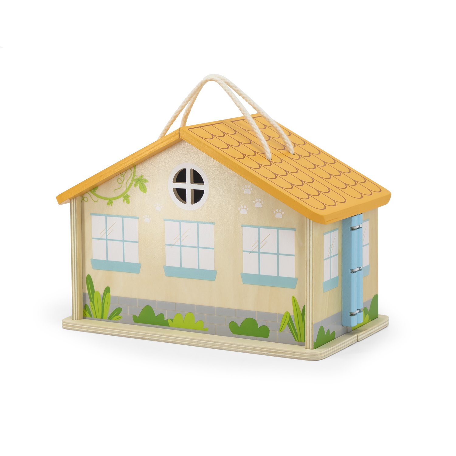 Welcome to the cheerful pet hospital from Viga Toys®! In this charming wooden house, children can create their own stories with the vet, nurse, dog and cat. The set includes 19 pieces, such as medical accessories like a stethoscope, syringe and thermometer. Everything fits neatly inside the house, which features a handle for easy carrying.